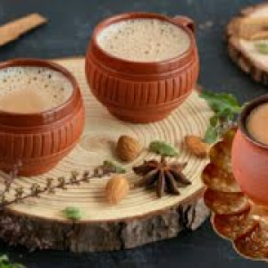 A rich and indulgent tea brewed with strong tea leaves, milk, and spices, served in a traditional clay cup (matka) for an authentic, creamy, and aromatic experience.