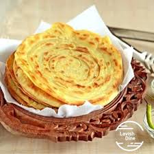 A buttery, multi-layered flatbread, crispy on the outside and soft on the inside, perfect for pairing with curries or gravies.