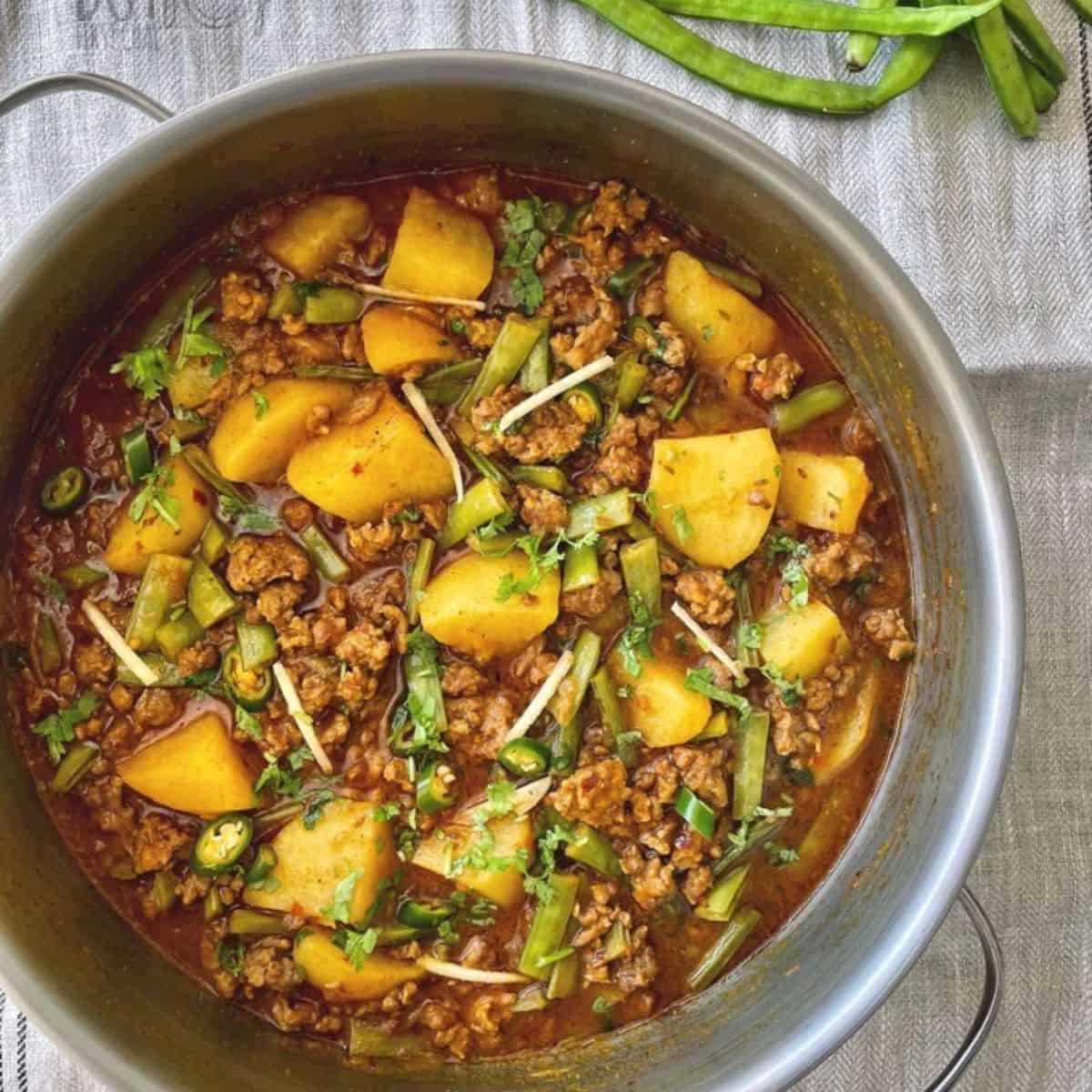 A comforting dish of minced meat (beef or chicken) cooked with potatoes and a blend of fragrant spices, creating a rich and savory stew.